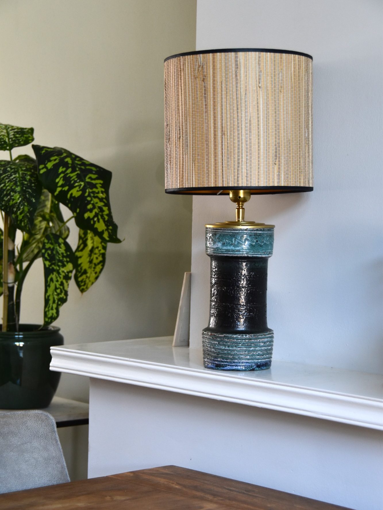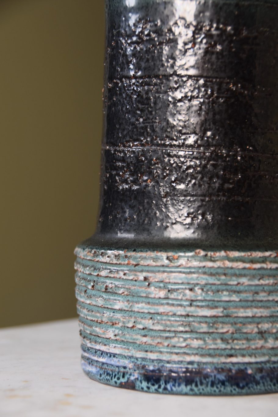 Deze lampenvoet is gemaakt van een originele vintage vaas en heeft een geglazuurde blauw-zwarte afwerking met natuurlijke kleurnuances. De diepe kleuren en subtiele glans geven het geheel een karaktervolle look.