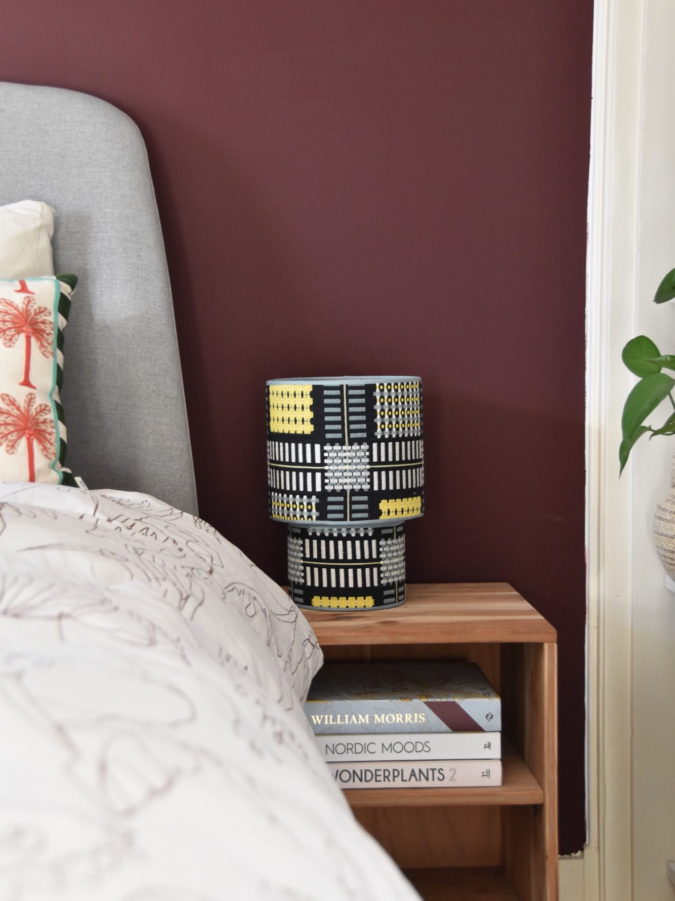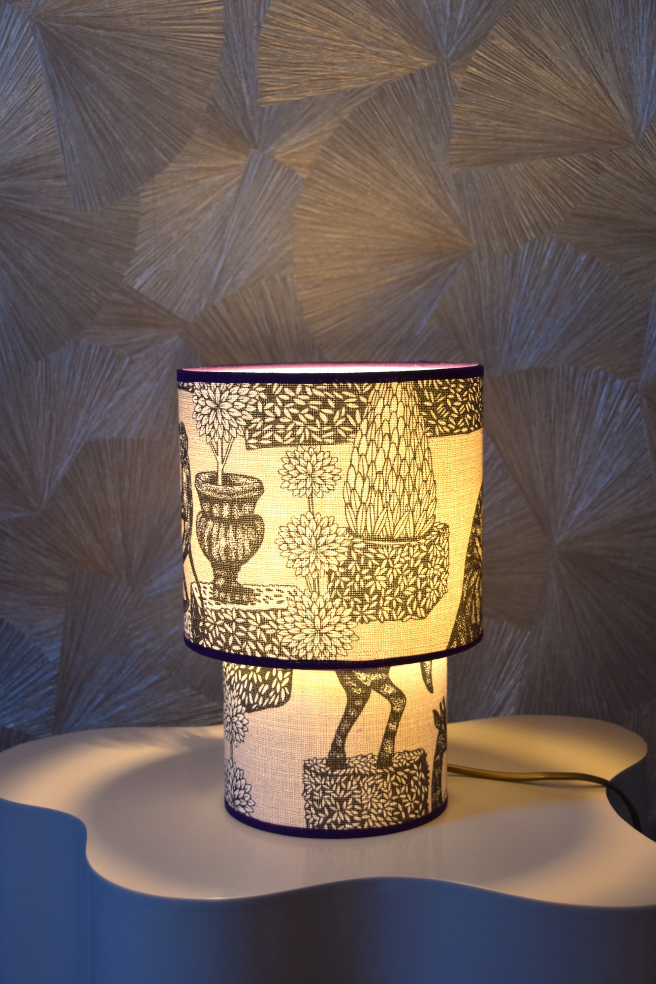 Simpel en toch speciaal met de paarse afwerking. Een gezellige stof om naast je bed te hebben en ideaal als leeslampje.