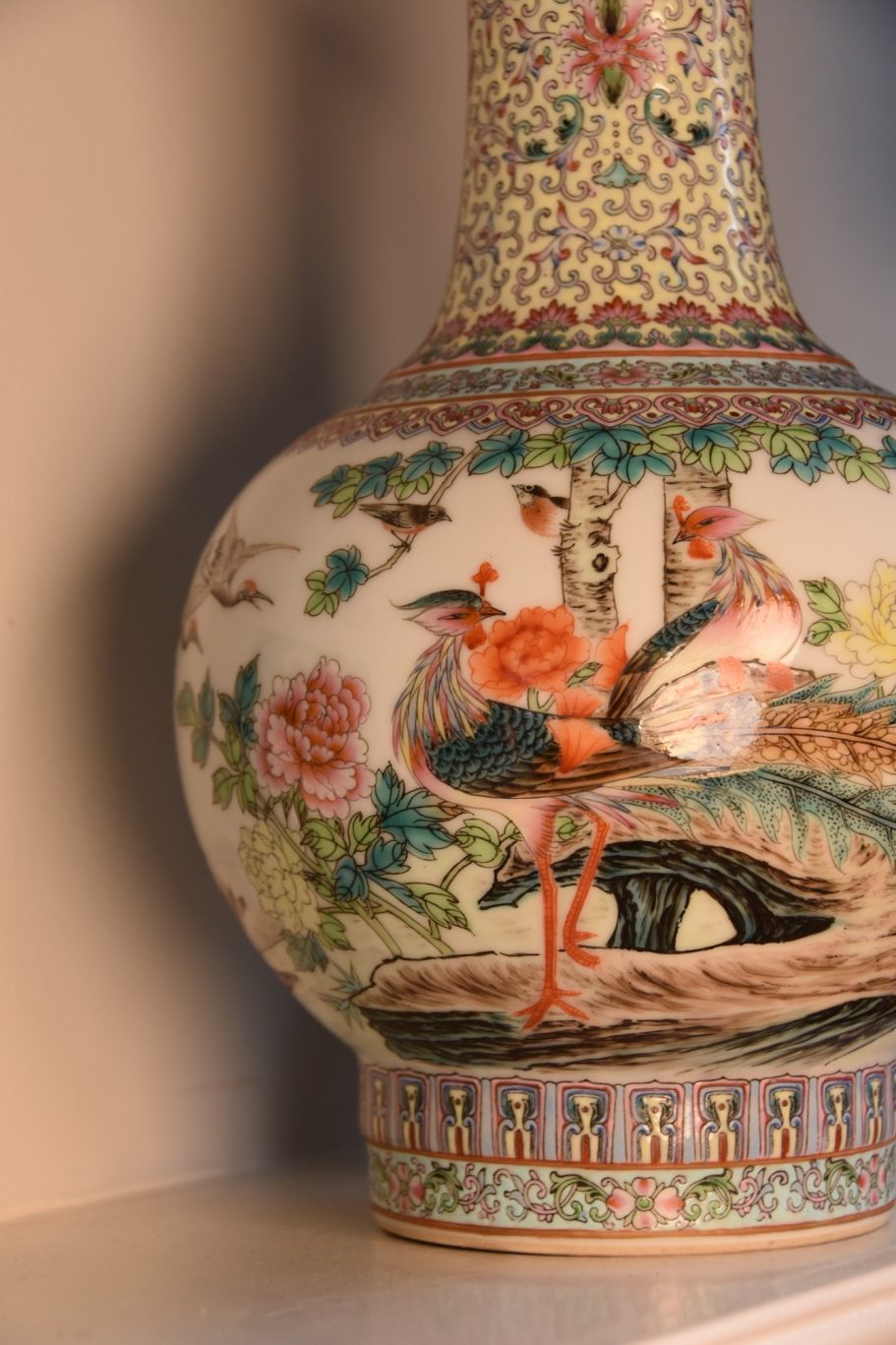 Met de fazanten als ponkstuk straalt deze vaas schoonheid en elegantie uit. De lamp trekt direct je aandacht en brengt een vleugje Aziatische mystiek in huis.