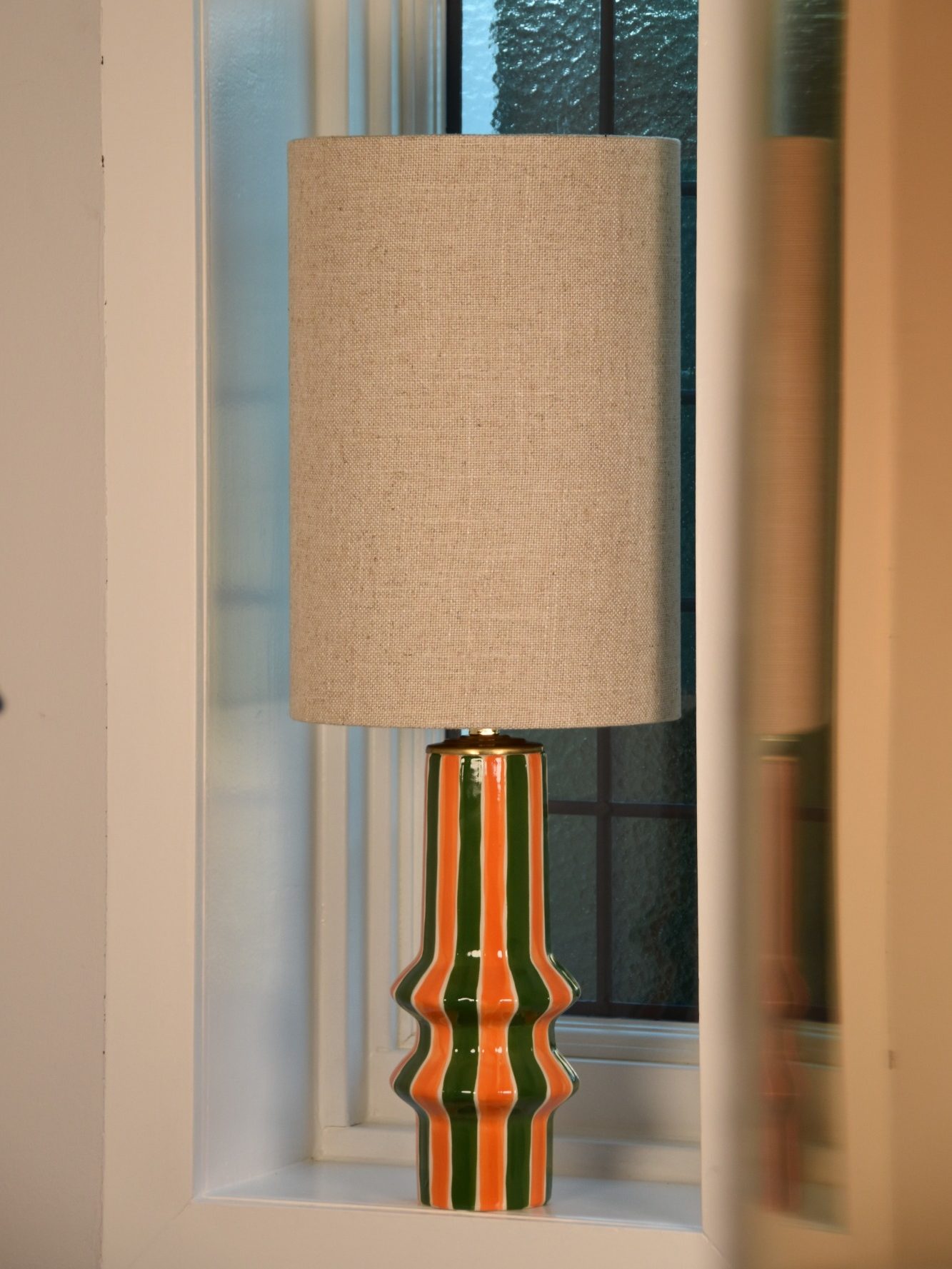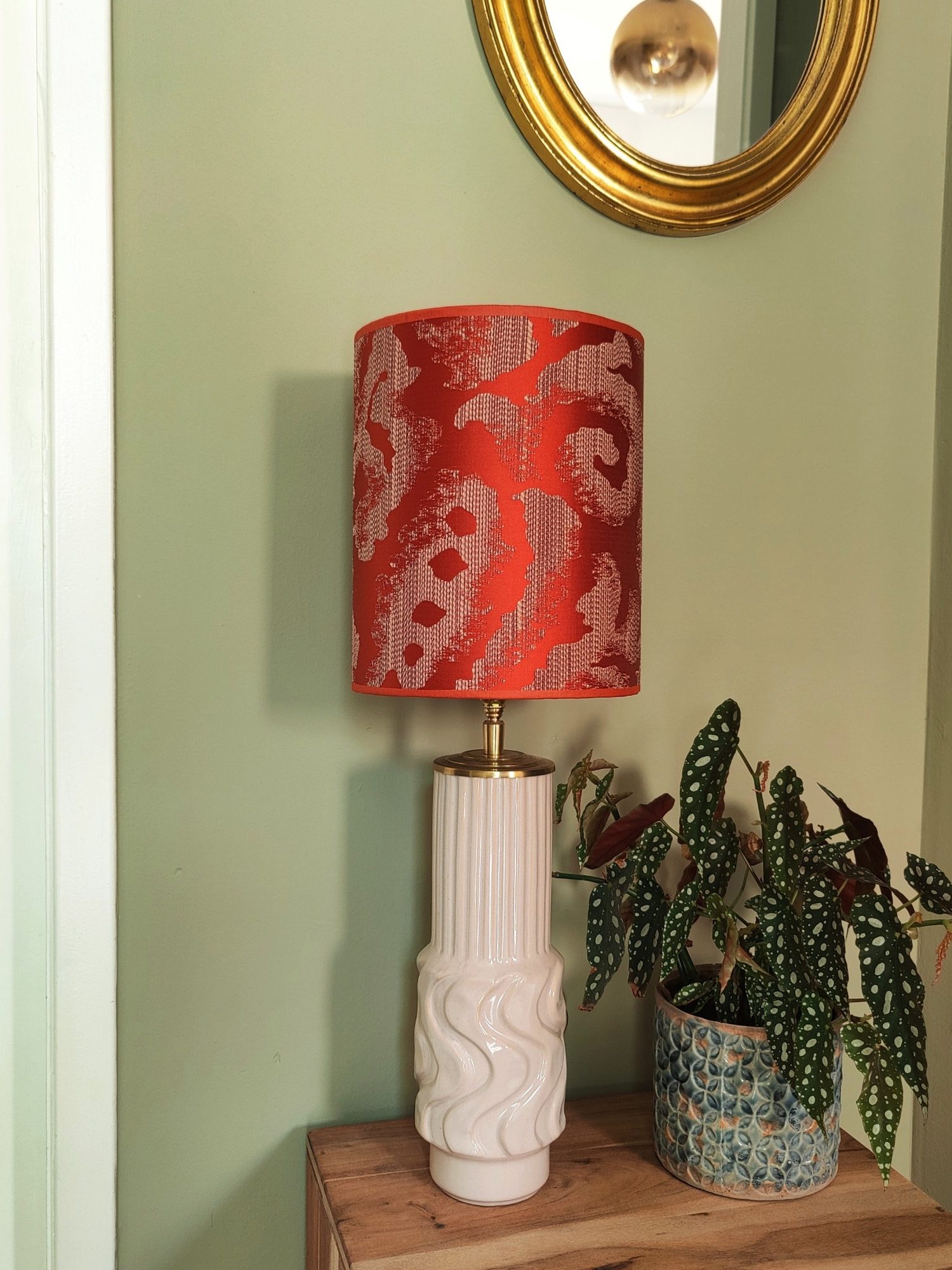 Met zijn golvende én strakke lijnen vormt deze lampenvoet samen met de rode kap een stijlvol sfeerstuk dat direct de aandacht trekt. De slanke vorm maakt ’m perfect voor een vensterbank, smal kastje of elk plekje dat wel wat karakter kan gebruiken.